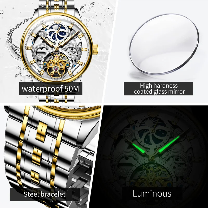 Automatic Mechanical Wrist Watch for Men Unique Openwork Skeleton Design Fashion Luxury Men’s Watches